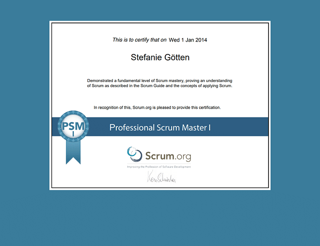 Ich habe die erste Prüfung bei Scrum.org in 2014 abgelegt. Der Schwieirgkeitsgrad von PSM I ist deutlich niedriger als bei allen weiteren Scrum.org Prüfungen und für jeden gut zu schaffen.